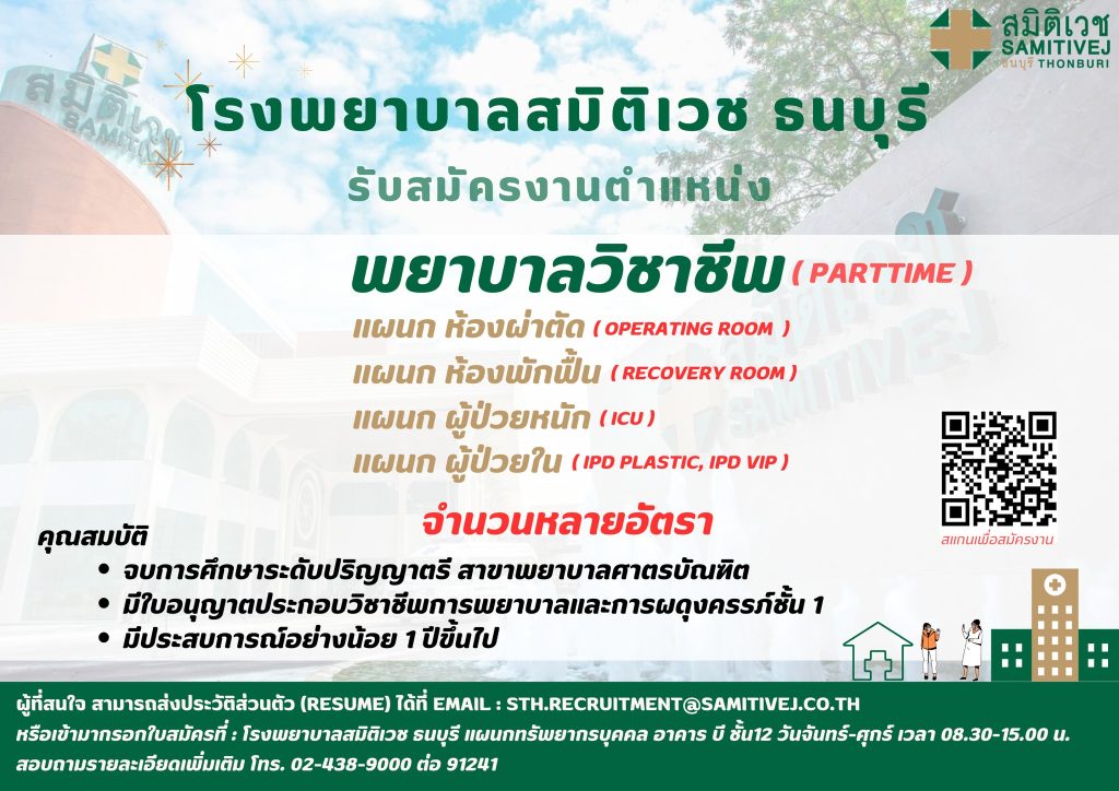 โรงพยาบาลสมิติเวช ธนบุรี รับสมัครพยาบาลวิชาชีพ( Parttime ) จำนวนหลายอัตรา ด่วนมาก !