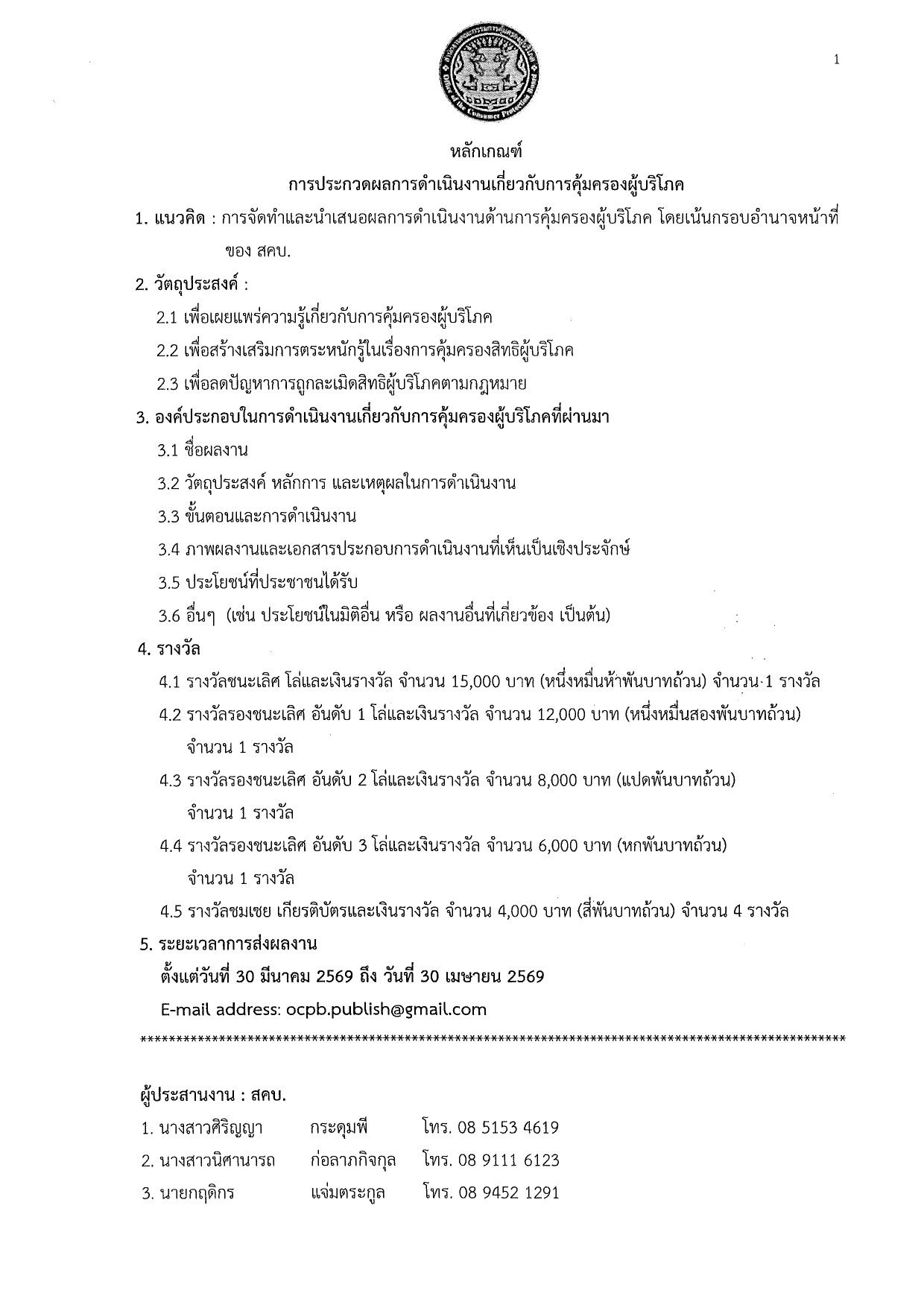 📧 āļŠāđˆāļ‡āļœāļĨāļ‡āļēāļ™āļ—āļēāļ‡āļ­āļĩāđ€āļĄāļĨ: ocpb.publish@gmail.com